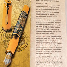 According to ancient Chinese mythology, there are guardian deities in the four directions in the sky, and all creatures are said to belong to each guardian deity according to their nature and characteristics. The guardian deities of the four directions are called the "Four Gods": the Azure Dragon in the East, the White Tiger in the West, the Vermilion Phoenix in the South, and Xuanwu (Black Tortoise-Snake) in the North. In accordance with the "Wuxing" (Five Phases Theory), the Yellow Qilin (Kirin) was added in the center to make up the number "five". When the Golden Dynasty was first released as the Asia Limited Edition, fountain pen enthusiasts all would have thought that it would become the "Four" Gods series, but in the end, "five" fountain pens were released. The reason was as described above.