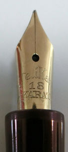 Nib; material: 18 ct gold, shape: round vent hole, logo: